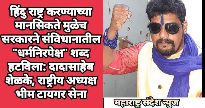 हिंदु राष्ट्र करण्याच्या मानसिकते मुळेच सरकारने संविधानातील “धर्मनिरपेक्ष” शब्द हटविला: दादासाहेब शेळके,राष्ट्रीय अध्यक्ष भीम टायगर सेना