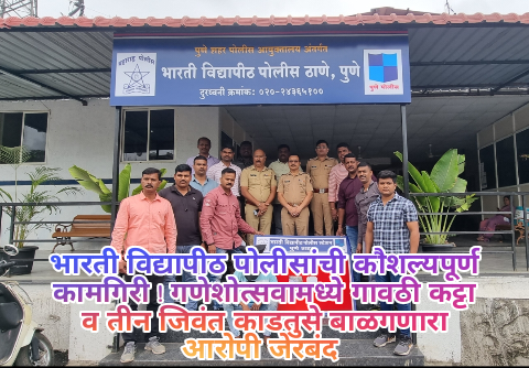 सदरची कामगिरी मा. रितेशकुमार पोलीस आयुक्त पुणे शहर, मा. संदीप कर्णिक सह आयुक्त, पुणे शहर, मा. प्रविणकुमार पाटील, अपर पोलीस आयुक्त, पश्चिम प्रादेशीक विभाग पुणे मा. श्रीमती स्मार्तना पाटील सो मा. पोलीस उप आयुक्त परिमंडळ २, मा. नारायण शिरगावकर साो, मा. सहाय्यक पोलीस आयुक्त स्वारगेट विभाग, पुणे याचे मार्गदर्शनाखाली भारती विद्यापीठ पोलीस स्टेशनकडील वरिष्ठ पोलीस निरीक्षक श्री विनायक गायकवाड, तसेच पोलीस निरीक्षक (गुन्हे) विजय पुराणिक, गिरीश दिघावकर, सहाय्यक पोलीस निरीक्षक अमोल रसाळ, पोलीस उपनिरीक्षक धिरज गुप्ता, पोलीस अंमलदार मंगेश पवार, निलेश खैरमोडे, सचिन सरपाले, चेतन गोरे, महेश बारावकर, शैलेश साठे, निलेश ढमढेरे, अवधतु जमदाडे, अभिजीत जाधव, धनाजी धोत्रे, सचिन गाडे, हर्षल शिंदे, आशिष गायकवाड, अभिनय चौधरी, राहुल तांबे, विक्रम सावंत यांच्या पथकाने केली आहे