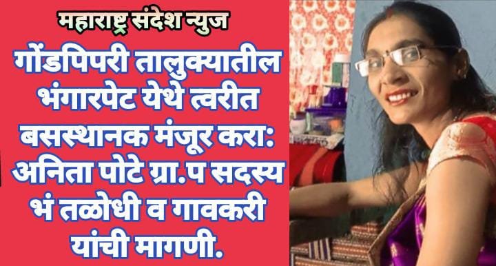 गावात बसस्थानकच नसल्याने पाऊसाळ्यात प्रवाश्यांना नाहक मनस्ताप सहन करावा लागत आहे. करीता भंगारपेट येथे लवकरात लवकर बसस्थानक मंजूर करा अन्यथा आंदोलन करू अशी मागणी ग्राम पंचायत सदस्य सौ. अनीताताई काशीनाथ पोटे सह संपूर्ण गावकऱ्यानी केली आहे