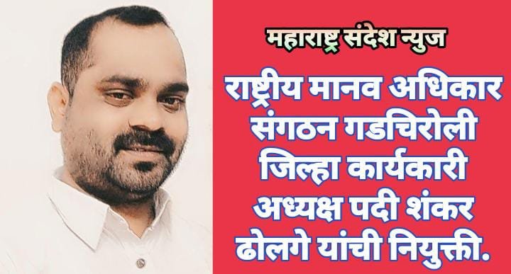 राष्ट्रीय मानव अधिकार संगठन गडचिरोली जिल्हा कार्यकारी अध्यक्ष पदी शंकर ढोलगे यांची नियुक्ती.