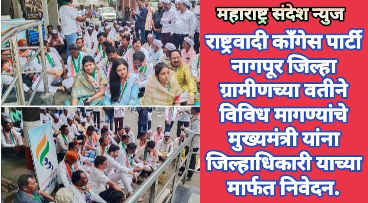 राष्ट्रवादी काँगेस पार्टी नागपूर जिल्हा ग्रामीणच्या वतीने विविध मागण्यांचे मुख्यमंत्री यांना जिल्हाधिकारी याच्या मार्फत निवेदन.