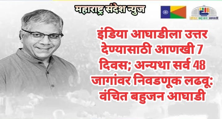महाराष्ट्र संदेश न्युज ! ऑनलाईन मुंबई:- वंचित बहुजन आघाडीला “इंडिया आघाडीत” निमंत्रण न मिळाल्याने काँग्रेस सह मित्र पक्षावर वंचित बहुजन आघाडीच्या नेत्यांनी प्रश्न चिन्ह निर्माण केले आहे. यावेळी त्यांनी प्रतिक्रिया दिली की, काँग्रेसला वंचित बरोबर आघाडी करण्यात रस आहे का? काँग्रेस अध्यक्ष खर्गे यांना पाठवलेल्या पत्राच्या उत्तराची प्रतीक्षा ॲड. प्रकाश आंबेडकर करत आहेत; उत्तर देण्यासाठी आणखी 7 दिवस; अन्यथा सर्व 48 जागांवर निवडणूक लढवू. असे प्रेस रिलिज म्हणून म्हटले आहे.