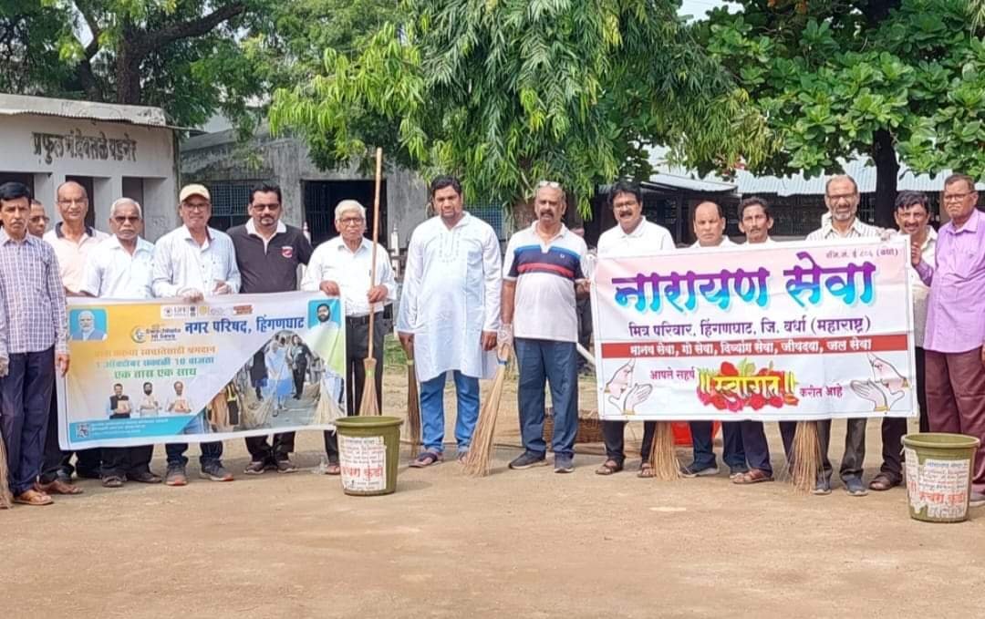 नारायण सेवा मित्र परिवार हिंगणघाटच्या वतीने मोक्ष धाम व गौरक्षण संस्थेत स्वच्छता अभियान.