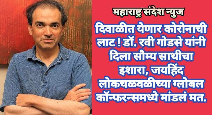 महाराष्ट्र संदेश न्युज ! ऑनलाईन मुंबई:- येत्या महिन्याभरात म्हणजे नोव्हेंबर महिन्यात जगभरात कोरोनाची आणखी एक लाट येईल, असा इशारा आंतरराष्ट्रीय ख्यातीचे डॉक्टर रवी गोडसे यांनी दिला. मात्र ही लाट सौम्य असून त्यासाठी कोणताही बूस्टर डोस घ्यावा लागणार नाही, असा दिलासाही त्यांनी दिला. जयहिंद लोकचळवळ या संस्थेतर्फे आयोजित ग्लोबल कॉन्फरन्स २०२३ मध्ये गुणवत्तापूर्ण व परवडण्याजोगी आरोग्य व्यवस्थेतील जनतेचा अधिकार या विषयावरील चर्चासत्रात ते बोलत होते. या सत्रात जयहिंद लोकचळवळीचे प्रणेते व संस्थापक डॉ. सुधीर तांबे यांनीही गुणवत्तापूर्ण व परवडणारी आरोग्य व्यवस्था या विषयावर आपलं मत मांडलं.