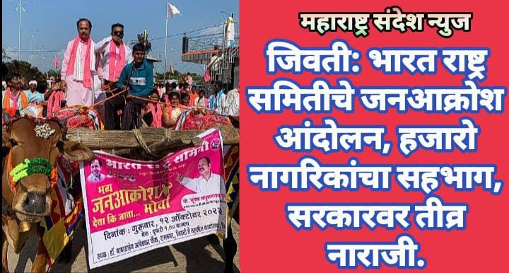 महाराष्ट्र संदेश न्युज ऑनलाईन चंद्रपूर दि.12:- जिल्हात नव्याने एन्ट्री मारलेल्या भारत राष्ट्र समितीचा आंदोलनाने प्रस्थापित पक्षांच्या भुवया उंचावल्या आहेत. सामान्य जनतेचा ओढा भारत राष्ट्र समितीकडे वडल्याचे चित्र जीवती मध्ये दिसून आलं.जीवती तालुक्यातील प्रश्नांना घेऊन बीआरएसने जनआक्रोश मोर्चा काढला.भारत राष्ट्र समितीचे नेते भूषण फुसे यांच्या नेतृत्वात हा मोर्चा काढण्यात आला.मोर्च्यात हजारो नागरिकांनी सहभाग घेतला होता. अब की बार, किसान सरकार या घोषणानी जिवती शहर दुमदुमल होत.