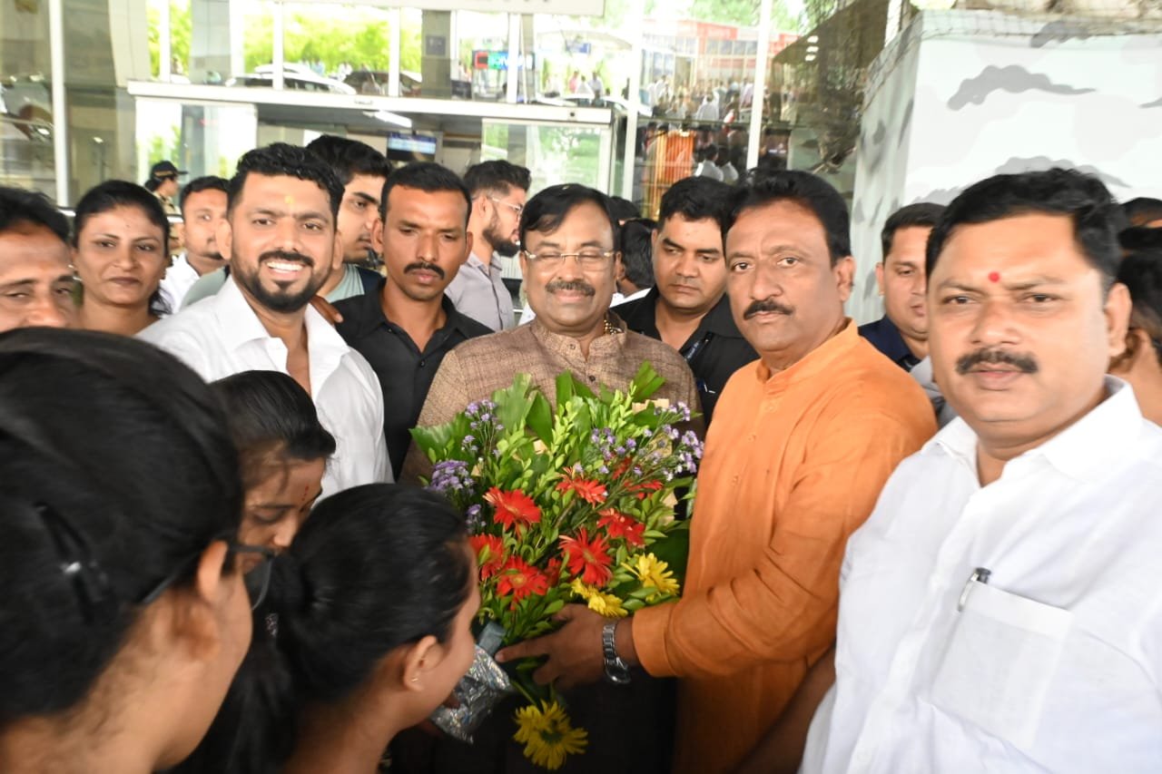 नागपुर विमानतळावर जमलेल्या कार्यकर्त्यांनी यावेळी ना. मुनगंटीवार यांना छत्रपती शिवाजी महाराजांची प्रतिमा, पेशवेकालीन टोपी, शाल-श्रीफळ आदी वस्तू भेट देत त्यांचा सत्कार केला. आनंदी कार्यकर्त्यांनी व शिवभक्तांनी ना. मुनगंटीवार यांना पेढे भरवत जल्लोष साजरा केला. यावेळी आमदार पंकज भोयर, आश्विनी जिचकार, भाजपा प्रदेश सचिव राजेश बकाने, वर्धा भाजपा जिल्हाध्यक्ष सुनील गफाट, बंटी (जीतेंद्र) कुकुडे भाजपा महानगर जिल्हाध्यक्ष नागपूर, विष्णू चांदे महानगर संघटन मंत्री नागपूर,बादल राऊत भाजयुमो महानगर जिल्हाध्यक्ष नागपूर, चंद्रपूरच्या माजी महापौर राखी कंचर्लावार, माजी भाजपा महानगर अध्यक्ष चंद्रपूर डॉ. मंगेश गुलवाडे, निलेश किटे, सुभाष कासनगोटूवार, ब्रीजभूषण पाझारे, जयंत कावळे, राजू मुक्कावार,सचिन बोगावार, स्वप्नील कलुरवार आदींनी स्वागत केले.