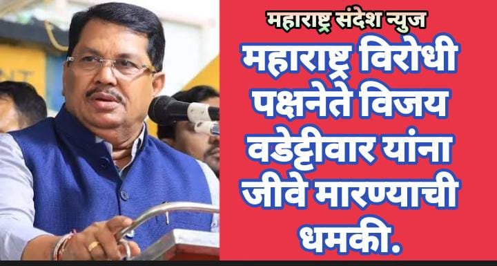 महाराष्ट्र संदेश न्युज ! ऑनलाईन चंद्रपूर:- महाराष्ट्र राज्य विधानसभेचे विरोधी पक्षनेते आणि काँगेस पक्षाचे नेते विजय वडेट्टीवार यांना जीवे मारण्याची धमकी देण्यात आलीय. विजय वडेट्टीवारांच्या मोबाईलवर त्यांना धमकीचा मॅसेज आलाय. त्यामुळे एकच खळबळ उडाली आहे.