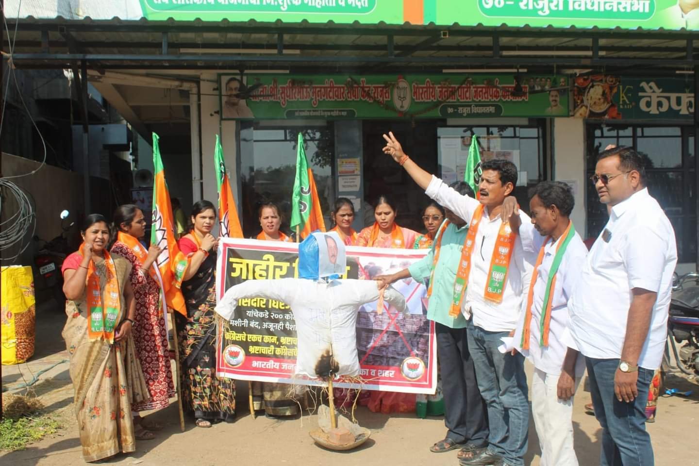 याठिकाणी धिरज शाहू या भष्टाचारी नेत्यासह त्याला खतपाणी घालणाऱ्या कॉंग्रेस विरोधात जोरदार घोषणाबाजी करून निषेध नोंदविला गेला. यावेळी शेकडो भाजपा कार्यकर्ते उपस्थित होते