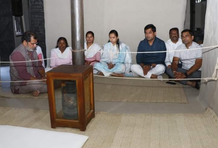 आश्रमात आगमण झाल्यानंतर त्यांचे पुष्पगुच्छ देऊन स्वागत करण्यात आले. त्यानंतर त्यांनी आदी निवास, कस्तुरबा गांधी वास्तव्यास असलेले ‘बा’ कुटी, राष्ट्रपिता महात्मा गांधी यांचे वास्तव्य असलेले बापू कुटी, गांधीजींचे तत्कालीन कार्यालय आदींना भेटी देऊन पाहणी केली. आश्रम प्रतिष्ठाच्यावतीने सुत व सुतापासून कापड निर्मिती केली जाते. त्याची देखील त्यांनी पाहणी केली.