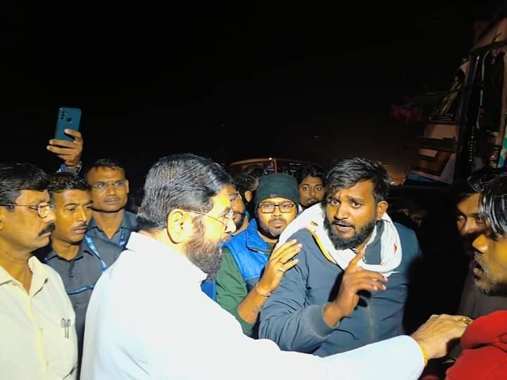मुंबईहून नागपुरला परतल्यानंतर मुख्यमंत्री एकनाथ शिंदे यांनी तात्काळ बाजार गावातील सोलर अर्नामेंट्स कंपनीला भेट देऊन पाहणी केली. या घटनेचा आढावा घेऊन पुन्हा नागपुरकडे परतत असताना गोंडखैरीच्या बस स्थानकाजवळ एक अपघात झाल्याचे त्यांना समजले. याठिकाणी झालेल्या भीषण अपघातात एका ट्रक आणि बाईकची धडक होऊन बाईकचालक ट्रकच्या बोनेटमध्ये जाऊन अडकला होता. त्याचवेळी त्या ट्रकला एक वेगन आर कारही येऊन धडकली. त्यातही गाडीतले काही जण जखमी झाले. अपघात झाल्याचे कळताच त्याठिकाणी बघ्यांची गर्दी जमली, ही परिस्थिती पाहून मुख्यमंत्र्यांनी आपला ताफा तिथे थांबवायची सूचना केली. त्यानंतर ते स्वतः खाली उतरले. त्या ठिकाणी उभे राहून त्यांनी त्या तरुणाला प्रयत्नपूर्वक ट्रकखालून बाहेर काढायला लावले. त्याचा पाय गंभीर जखमी असल्याने तत्काळ त्याला आपल्या ताफ्यातील रुग्णवाहिका देऊन ते स्वतः त्याला नागपुरातील रवी नगर चौकातील सेनगुप्ता रुग्णालयात घेऊन आले.