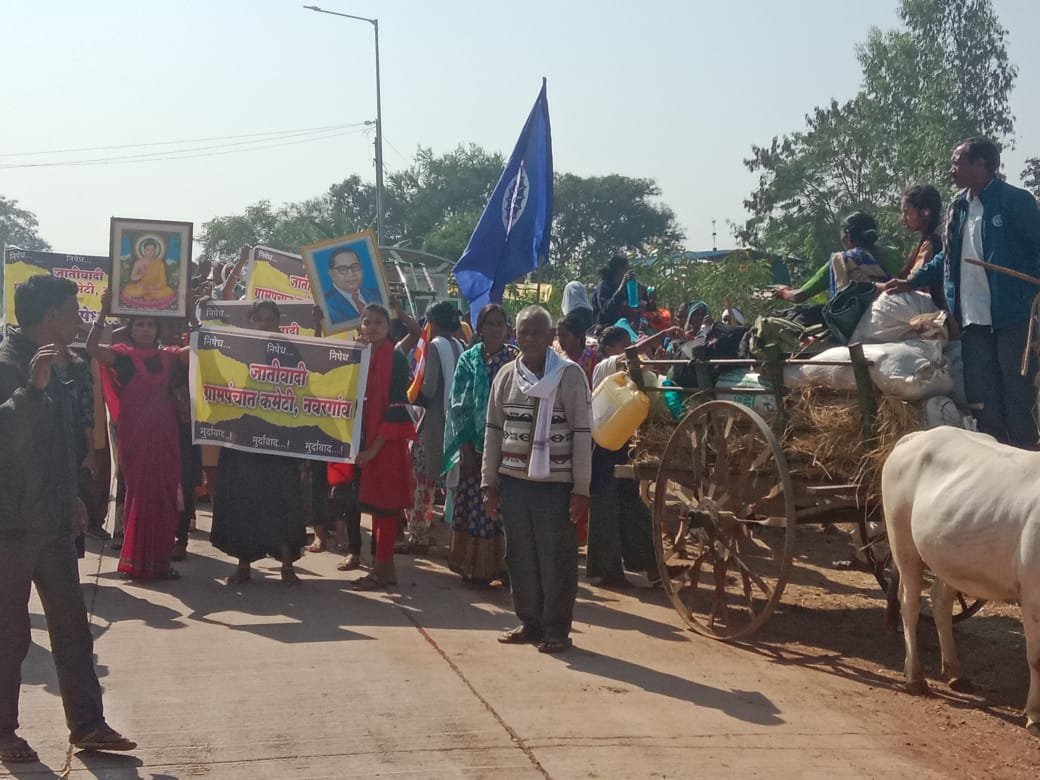 महाराष्ट्र संदेश न्युज ! ऑनलाईन गडचिरोली:- जिल्हातून एक खळबळजनक माहिती समोर आली आहे. येथील चामोर्शी तालुक्यातील नवरगाव (कुनघाडा) येथील आंबेडकरी समाजातील अनेक कुटुंबांनी गाव सोडले आहे. हे सर्व कुटुंब निळ्या ध्वजांसह महिलादेखील मोठ्या संख्येने सहभागी झाल्या आहेत. गावातील डॉ. बाबासाहेब आंबेडकर नावाचे नामफलक पोलीसाच्या मदतीने ग्रामपंचायतने अवैधरित्या हटविण्यात आल्यामुळे अनेक कुटुंबात संताप व्यक्त करण्यात येत आहे. त्यामुळे या आंबेडकरी समाजाने गाव सोडले आहे.