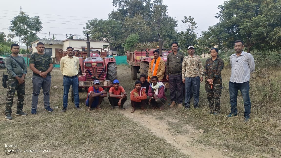 २७ डिसेंबर रोजी ला सकाळी ९ वाजताचे सुमारास मध्य चांदा वनविभाग, चंद्रपुर अंतर्गत बल्लारशाह वनपरिक्षेत्रातील नियतक्षेत्र केम येथील कक्ष क्रमांक ४९५ मधील सरकारी जंगलातुन अवैधरित्या रेती उत्खणन करुन वाहतुक सुरु असल्याबाबत गुप्त माहितीचे आधारे बल्लारपूर येथील नरेश बाबुलाल बहुरीया यांचे मालकीचे ट्रॅक्टर क्रमांक एम एच ३४ ए पी १०४३, एम एच ३४ एल ५८८३ व ट्राली क्रमांक एम एच ३३ २५३०, एम एच ३४ एल ५८८४ जप्त करुन आरोपी विरुध्द भारतीय वनअधिनियम १९२७ चे कलम २६(१) ड (ग), ५२ दिनांक २७/१२/२०२३ अन्वये प्राथमिक वनगुन्हा क्रमांक १३/८ जारी करुन दोन ट्रॅक्टर व इतर मुद्देमाल जप्त करण्यात आलेला आहे. वनपरिक्षेत्र बल्हारशाह व फिरते पथक बल्हारशाह यांचे संयुक्त गस्ती दरम्यान सदरची कार्यवाही करण्यात आली.