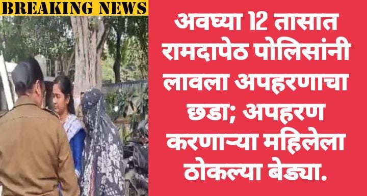 या घटनेचे गांभीर्य पाहत जिल्हा पोलीस अधीक्षक बच्चन सिंह यांच्या मार्गदर्शनात रामदास पेठ पोलीस स्टेशनचे पोलीस निरीक्षक मनोज बहुरे यांनी तपास चक्र फिरवत यंत्रणा कामी लावली व बारा तासाच्या आत अपहरण झालेल्या मुलीचा शोध घेतला, आज दुपारच्या सुमारास रामदास पेठ पोलिसांनी मुलीचे अपहरण करणाऱ्या महिलेला माणिक टॉकीज परिसरातून ताब्यात घेत अकोट फाईल भागातील बापू नगर मधील महिलेच्या घरी शोध मोहीम राबविली, त्या ठिकाणी अपहरण झालेली मुलगी ही सुरक्षित रित्या आढळून आली.