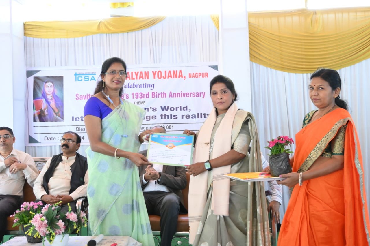 महाराष्ट्र संदेश न्युज ! ऑनलाईन नागपुर:- दिनांक 03 जानेवारी 2024 रोजी लोक कल्याण योजना नागपूर यांच्या वतीने ब्लेसिंग लाॅन /हाॅल, सिव्हिल लाईन्स,स्टेट बँकेच्या जवळ नागपूर येथे सावित्रीबाई फुले यांची जयंती साजरी करण्यात आली. यावेळी सामाजिक कार्यकर्त्या अनिता फुले यांच्या सह सामाजिक क्षेत्रात काम करणाऱ्या महिलांचा मान्यवरांच्या हस्ते सत्कार करण्यात आला.