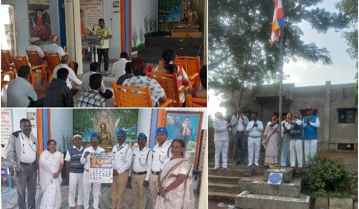 महाराष्ट्र संदेश न्युज ! ऑनलाईन सांगली:- बौद्ध धम्म संस्कार संघ, श्रावस्ती विहार सांगली येथे जागतिक बौद्ध धम्म ध्वज दिन तथा जागतिक पंचशील ध्वज दिन मोठा उत्साहात साजरा करण्यात आला. या कार्यक्रमाचे प्रमुख पाहुणे म्हणून सांगली मिरज कुपवाड महानगरपालिकेच्या माजी मागासवर्गीय समितीच्या सभापती तथा नगरसेविका शेवंता वाघमारे यांच्या हस्ते पंचशील ध्वजाचे ध्वजारोहण करण्यात आले. यावेळी समता सैनिक दलाचे प्रमुख जितेंद्र कोलप व इतर समता सैनिक यांनी ध्वजवंदना दिली.