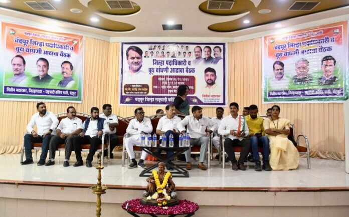 महाराष्ट्र संदेश न्युज ! ऑनलाईन चंद्रपूर:- आज चंद्रपूर जिल्हा राष्ट्रवादी काँग्रेस पक्षाची जिल्हा कार्यकारिणी व बूथ आढावा बैठक महेश भवन, चंद्रपूर येथे राष्ट्रीय सचिव तथा माजी आमदार राजेंद्र जैन, जिल्हाध्यक्ष नितिन भटारकर, महिला जिल्हाध्यक्षा सौ. रंजनाताई पारशिवे यांच्या प्रमुख उपस्थितीत पार पडली. यावेळी आगामी काळात चंद्रपूर जिल्ह्यात पक्ष संघटन मजबूत करणे व पक्षाचा विस्तार करुन बूथनिहाय बांधणी करणे यासंदर्भात चर्चा करून जिल्हयातील आढावा घेण्यात आला.