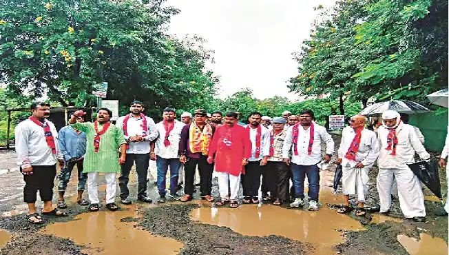 म्हाडा कॉलनी भागात रस्त्यांवर मोठ्या प्रमाणात खड्डे पडले आहेत. या खड्डेमय रस्त्यावरून वाहन चालविताना चालकांना कसरत करावी लागत आहे. मनपाकडे तक्रार करूनही रस्ते दुरुस्ती न झाल्याने मनपा प्रशासनाचे लक्ष वेधण्यासाठी मनसेने खड्डयांवर गुलाल व नारळ वाहून खड्ड्यांचे पूजन केले. आंदोलनस्थळी ढोल-ताशा वाजवून मनपा प्रशासन व इंजिनिअर, ठेकेदार, लोकप्रतिनिधी यांचा निषेध करण्यात आला.