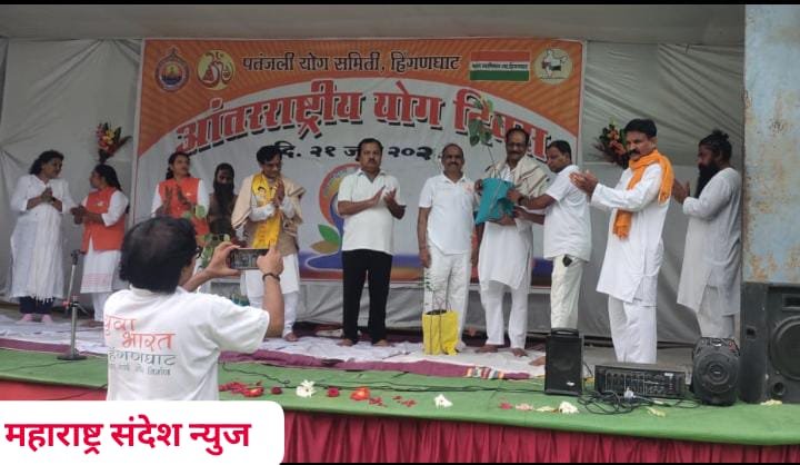 महाराष्ट्र संदेश न्युज ! ऑनलाईन हिंगणघाट:- स्थानिक रा. सु. बिडकर महाविद्यालयात जागतिक योग दिनाचे औचित्य साधून कार्यक्रमाचे आयोजन करण्यात आले. या कार्यक्रमाची सुरुवात दीप प्रज्वलंन करून करण्यात आली. या कार्यक्रमाच्या अध्यक्षस्थानी माजी नगरपरिषद अध्यक्ष प्रेम बसंतांनी होते तर मुख्य अतिथी म्हणून रा. सु. बिडकर महाविद्यालयाचे प्राचार्य डॉ. बालाजी राजूरकर आणि सौ. कुणावारची उपस्थिती होती. यावेळी योग शिक्षक दामोधर राऊत यांनी योगासने व त्याची महत्त्व यावर मार्गदर्शन केले. अल्पोहरा नंतर कार्यक्रम संपला.