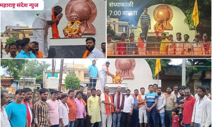 महाराष्ट्र संदेश न्यूज ! ऑनलाईन कळमेश्वर:- जगात विख्यात साहित्यरत्न लोकशाहीर आण्णाभाऊ साठे यांच्या 55 व्या स्मृतिदिन निमित्ताने आज दि. 18 जुलै रोजी सकाळी 10 वाजता साहित्यसम्राट लोकशाहीर आण्णाभाऊ साठे यांच्या पुतळ्याला पुष्पहार अर्पण करून सर्व समाज बांधवांनी विनम्र अभिवादन केले व तसेच संध्याकाळी 7:30 वाजता लोकशाहीर आण्णाभाऊ साठे यांच्या 55 व्या पुण्यतिथीनिमित्त पुतळा परिसरात 55 कॅण्डल लावून स्मृतीस अभिवादन करण्यात आले.