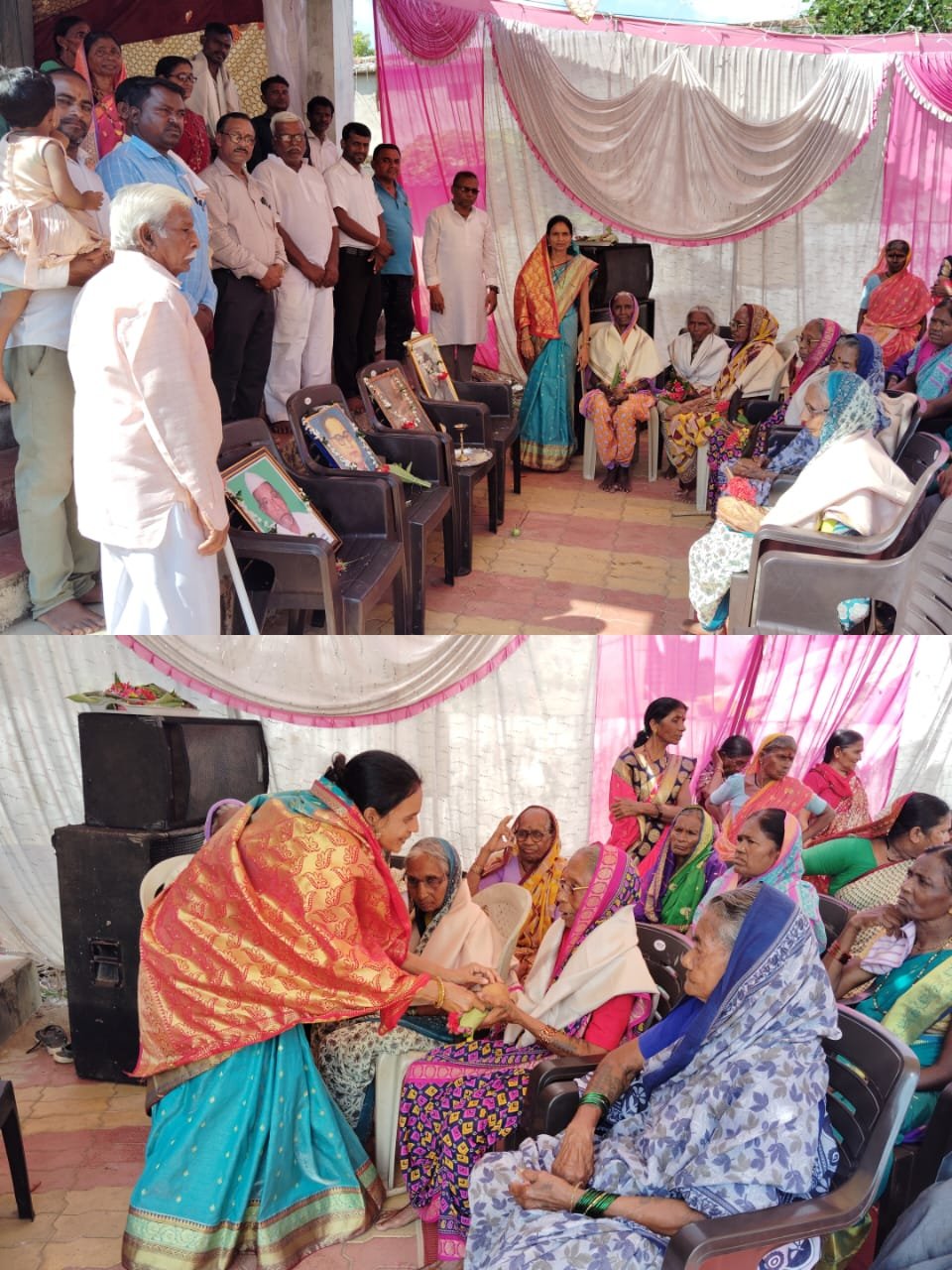*कुरखेडा: -* जेष्ठ नागरिक दिना निमित्त तसेच नवरात्र उत्सव निमित्त देऊळगाव येतील सार्वजनिक सभामंडपात जेष्ठ महिला तसेच विधवा महिलांचा सत्कार समारंभाचे आयोजन करण्यात आले आहे.मुळगाव देऊळगाव येतील व सध्या कुरखेडा येथे वास्तव्यास असणाऱ्या प्रसिद्ध साहित्यिक, सामाजिक कार्यकर्त्या संगीता संतोष ठलाल यांनी केले होते. गावातील ऐंशी वर्षावरील जेष्ठ विधवा महिला तसेच गावातील विधवा महिलांच्या विषयी आपुलकी ठेवून तसेच समाजात त्यांना मानाचे स्थान मिळावे यासाठी कार्यक्रमाचे आयोजन केले होते.सर्व प्रथम महापुरुषांच्या प्रतिमेच्या पूजनाने कार्यक्रमाला सुरूवात झाली. या कार्यक्रमाचे अध्यक्ष देऊळगाव येतील पोलिस पाटील नास्तिक पंधरे, विशेष अतिथी प्रतिष्ठीत नागरिक वासुदेव कोल्हे ,कार्यक्रमाचे प्रमुख वक्ते मोहन देशमुख, प्रमुख पाहुणे म्हणून रेमाजी बावणे, अंगणवाडी सेविका ताराबाई खुणे, राकेश खुणे ,प्रतिष्ठित नागरिक उमाजी पाटील खुणे, जास्वंदा गावळे, देऊकाबाई गावळे, गोपाल खुणे, प्रमोद कुमरे, रामदासजी खुणे, संतोष ठलाल प्रामुख्याने उपस्थित होते. सामाजिक कार्यकर्त्या संगीता ठलाल यांनी ऐंशी वर्षावरील जेष्ठ विधवा महिलांना पुष्पगुच्छ, शाल, श्रीफळ देऊन त्यांचा सत्कार केला तसेच उपस्थित विधवा महिलांना पुष्पगुच्छ, वस्त्रदान देऊन त्यांचा सत्कार केला. त्यावेळी उपस्थित असलेल्या जेष्ठ विधवा महिला व इतर विधवा महिला देमाबाई ठलाल,सितकुराबाई ईस्कापे,जाईबाई मुर्तवतकार, लक्ष्माबाई मडावी, भागरता उईके, तसेच देऊळगाव येतील बहुसंख्येने महिला, पुरूष उपस्थित होते. देऊळगाव येतील प्रगती सार्वजनिक महिला मंडळ यांनी सहकार्य केले तसेच देऊळगाव वासियांनी सहकार्य केले. विशेष सहकार्य नानाभाऊ नाकाडे यांनी केले. कार्यक्रमाचे आयोजन आणि प्रास्ताविक सामाजिक कार्यकर्त्या संगीता ठलाल यांनी केले तर सुत्रसंचालन व आभार भारत मेश्राम यांनी मानले.