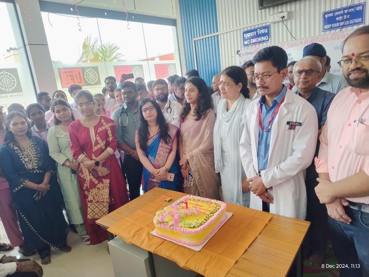 एटापल्ली :- ०८/१२/२०२४ रोजी, मौजा हेडरी येथील लॉयड्स काली अम्मल मेमोरियल हॉस्पिटल ला एक वर्ष पुर्ण झाल्याच्या निमित्याने