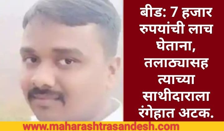 बीड: 7 हजार रुपयांची लाच घेताना, तलाठ्यासह त्याच्या साथीदाराला रंगेहात अटक.