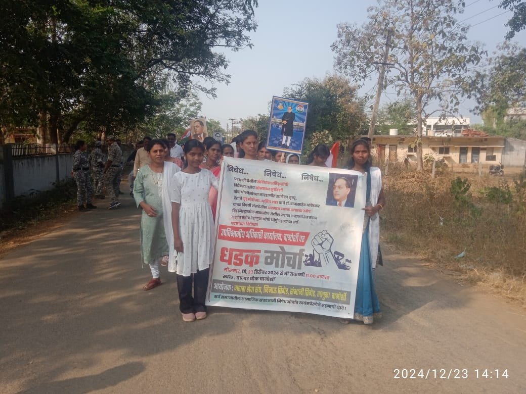 परभणी येथील संविधान प्रतिकृतीची विटंबना तसेच सोमनाथ सुर्यवंशी यांचा पोलिसांनी मारहाणीत झालेला मृत्यू.देशाचे गृहमंत्री मा.अमित शहा यांचे डॉ.बाबासाहेब आंबेडकर यांच्या विषयी संसदेतील अवमान जनक वक्त्यव्य तसेच बीड जिल्ह्यातील मसाजोग येथील मराठा समाजातील तरुण सरपंच संतोष देशमुख यांची निर्घृण हत्या या सर्व घटनांच्या विरोधात सर्वपक्षीय व सामाजिक संघटनेच्या वतीने निषेध मोर्चाचे आयोजन करण्यात आले. या वेळीस समितीच्या वतीने धडक मोर्चा हजारोच्या संख्येने महिलां व पुरुषांचा मोर्चा २३ डिसेंबर रोजीचामोर्शी येथीलउपविभागीय अधिकारी कार्यालयावर धडकला त्यावेळी सहाय्यक जिल्हाधिकारी तथा उपविभागीय अधिकारी अमित रंजन यांना निवेदन देण्यात आले विविध मागण्यासाठी सर्वपक्षीय निषेध मोर्चा आयोजन आले समितीच्या वतीने धडक मोर्चा काढण्यात आला होता हा धडक मोर्चा चामोर्शी नगर पंचायत बाजार चौक येथून शहरातील प्रमुख मार्गांनी हजारोच्या संख्येने घोषणा देत मोर्चा निघून उपविभागीय अधिकारी कार्यालयावर मोर्चा आल्यानंतर मोर्चाचे सभेत रूपांतर करून त्या ठिकाणी काँग्रेसचे अध्यक्ष प्रमोद भगत, कुणबी संघटनेचे अध्यक्ष गंगाधर पाल.डॉ.सुरपाम.मदन उंदिरवाडे.चंद्रगुप्त कोटांगले.राज बनसोड.अतुल येलमुले.डी.एस रामटेके विनोद खोबे.श्याम रामटेके,सत्यवानसोरते.अँड.डीम्प्पल उंदीरवाडे.माणिक तुरे.आदींनी यानी मार्गदर्शन करताना परभणी.डॉ बाबासाहेब आंबेडकर यांच्या बाबत अवमान करणारे वक्तव्य.बीड जिल्ह्यातील घटनेचा निषेध व्यक्त करण्यात आला.या मोर्च्यात सम्यक बौद्ध समाज मंडळ आंबेडकर वार्ड चामोर्शी.मराठा सेवा संघ,संभाजी ब्रिगेड. जिजाऊ ब्रिगेड.प्रेरणा बौद्ध मंडळ चामोर्शी.जगतगुरू तुकाराम महाराज कुणबीसमाज व आदी संघटनांचा समावेश होता यावेळी मोठ्या प्रमाणात समाज बांधवांनी हजारो संख्येनी उपस्थित होते पोलिसांचा चौक बंदोबस्त होता.