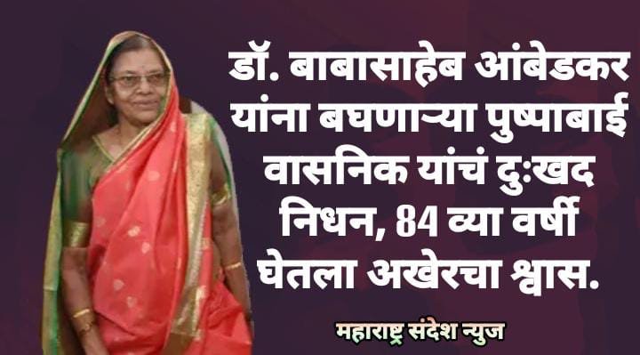 महाराष्ट्र संदेश न्युज ! ऑनलाईन नागपूर:- भारतरत्न डॉ बाबासाहेब यांना जवळून बघणाऱ्या आणि सामाजिक कार्यकर्ते सुनील वासनिक आणि कृषी मंत्रालय नवी दिल्ली माजी आयुक्त डॉ. कृपाकर वासनिक यांची मातोश्री पुष्पाबाई प्रल्हाद वासनिक यांचं आज आजाराने दुःखद निधन झालं. त्यांनी 84 व्या वर्षी नागपूर मेडिकल कॉलेज रुग्णालयात 27 डिसेंबर 2024 रोज शुक्रवारला सकाळी 9.30 वाजता अखेरचा श्वास घेतला. त्याच्यावर मागील काही दिवसांपासून रुग्णालयात उपचार सुरु होते. त्यांच्यावर नागपूर येथील मानेवाडा मोक्षधाम येते दुपारी 3.00 वाजता अंत्यसंस्कार करण्यात आला. यावेळी विविध क्षेत्रातील मान्यवर नागरीक मोठ्या संख्येने उपस्थित होते.