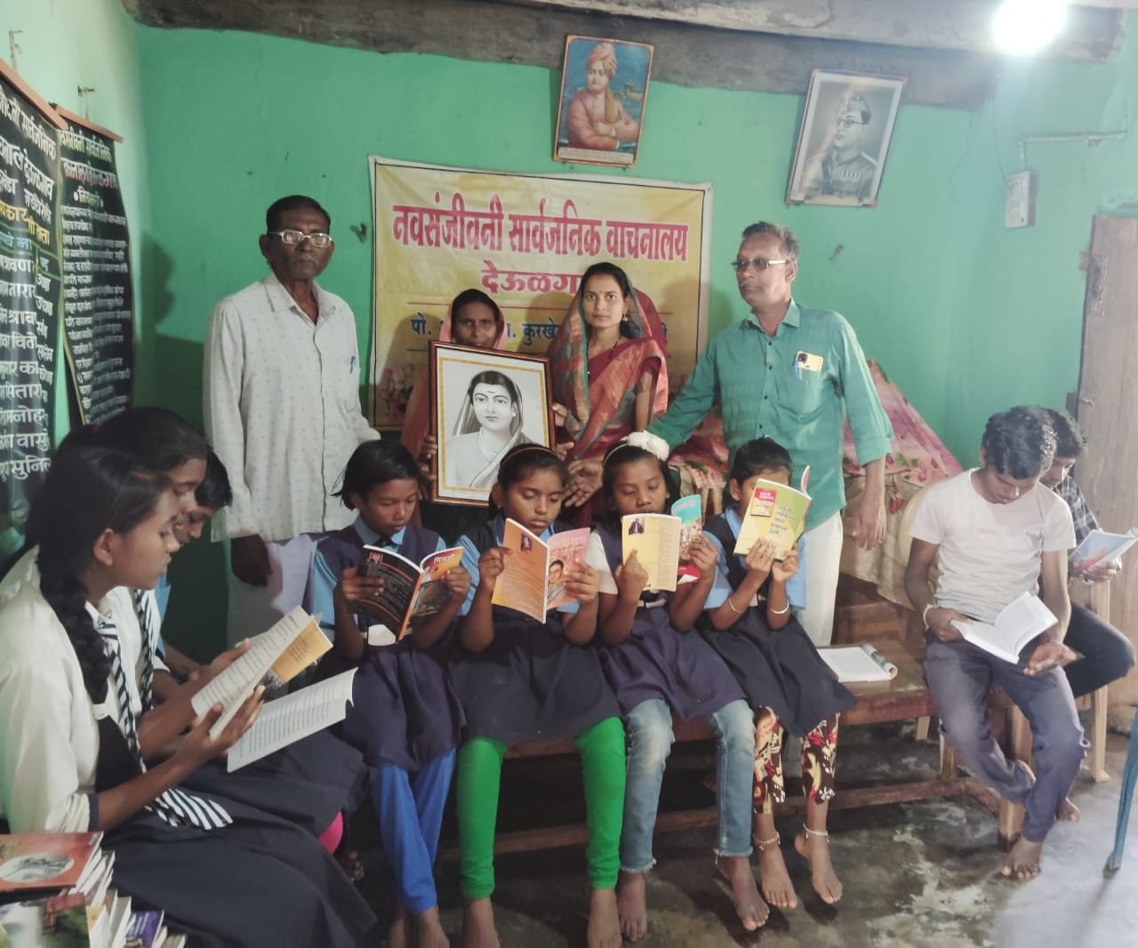 *कुरखेडा : -* वाचन संस्कृती जोपासण्यासाठी व विद्यार्थांना वाचनाची आवड लागावी यासाठी महाराष्ट्र शासनाच्या वतीने सर्व शासनमान्य सार्वजनिक वाचनालयात वाचन संकल्प महाराष्ट्राचा पंधरवडा उपक्रमा निमित्त कुरखेडा तालुक्यातील देऊळगाव येथे नवसंजीवनी सार्वजनिक वाचनालयात वाचन संकल्प महाराष्ट्राचा उपक्रम घेण्यात आला. या उपक्रमासाठी विध्या विकास हायस्कूल व जि.प. शाळा देऊळगाव येथील विद्यार्थी उपस्थित होते. सोबतच साहित्यिक, सामाजिक कार्यकर्त्या संगीता संतोष ठलाल यांनी नवसंजीवनी सार्वजनिक वाचनालयाला क्रांतीज्योती सावित्रीआई फुले यांची प्रतिमा भेट म्हणून दिली त्यावेळी वाचनालयाच्या सदस्या निर्मलाबाई ठलाल,शिक्षक मोहनलाल देशमुख, जेष्ठ नागरिक श्रावण जी ठलाल प्रामुख्याने उपस्थित होते.विद्यार्थांसोबत संवाद साधताना साहित्यिक संगीता ठलाल यांनी विद्यार्थांना पुस्तक वाचनामुळे माणसात परिवर्तन होतो,माणूस वाचनाने घडत असतो,वाचनाचे अनेक फायदे आहेत म्हणून वाचन संस्कृती जपणे ही आज काळाची गरज आहे म्हणून वाचन संस्कृती महाराष्ट्राचा या प्रेरणादायी उपक्रमा बद्दल शासनाचे ही त्यांनी आभार मानले.