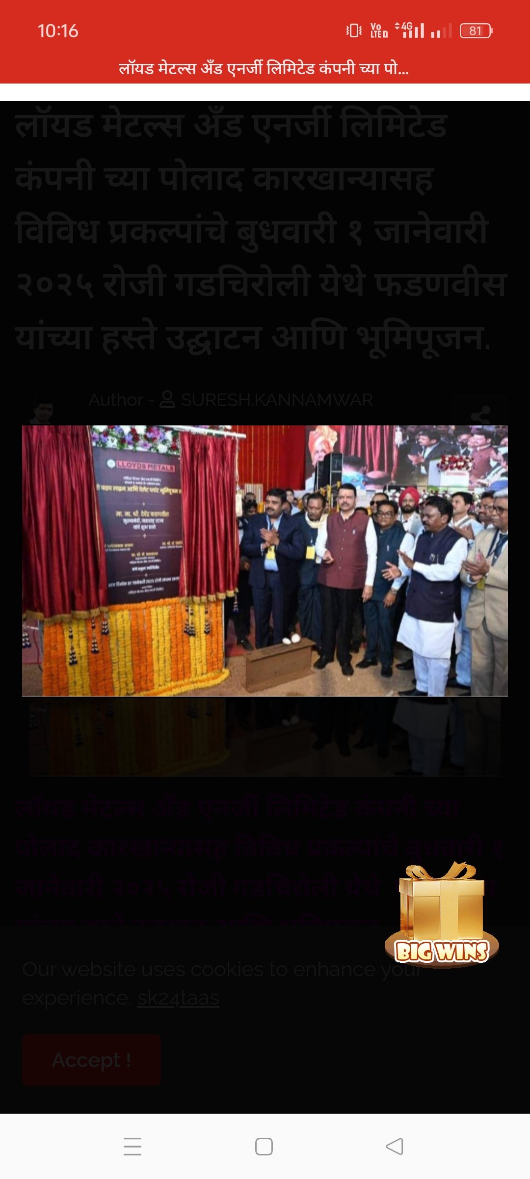 लॉयड मेटल्स अँड एनर्जी लिमिटेड कंपनीच्या पोलाद कारखान्यासह विविध प्रकल्पांचे बुधवारी १ जानेवारी २०२५ रोजी गडचिरोली येथे फडणवीस यांच्या हस्ते उद्घाटन आणि भूमिपूजन झाले.यावेळी ते बोलत होते.