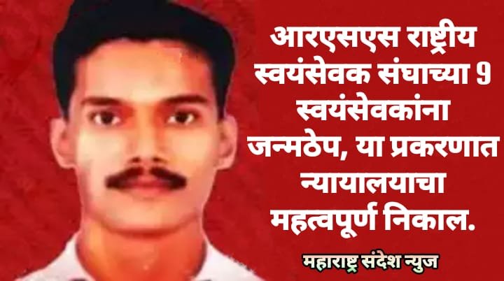 महाराष्ट्र संदेश न्युज ! ऑनलाईन केरळ:- राष्ट्रीय स्वयंसेवक संघाच्या नऊ स्वयंसेवकांना जन्मठेपेची शिक्षा सुनावण्यात आली आहे. केरळच्या थलासरी न्यायालयाने हा निर्णय मंगळवारी दिला. 2005 मध्ये कम्युनिस्ट पार्टी ऑफ इंडिया (मार्क्सवादी) सीपीआय (एम) चा कन्नपुरम चुंडा येथील कार्यकर्ता रिजिथ शंकरन याची हत्या करण्यात आली होती. 3 ऑक्टोबर 2005 रोजी हे हत्याकांडाची घटना घडली होती. या प्रकरणात थलस्सेरी येथील जिल्हा सत्र न्यायालयाने 9 स्वयंसेवकांना जन्मठेपेची शिक्षा सुनावली आहे.