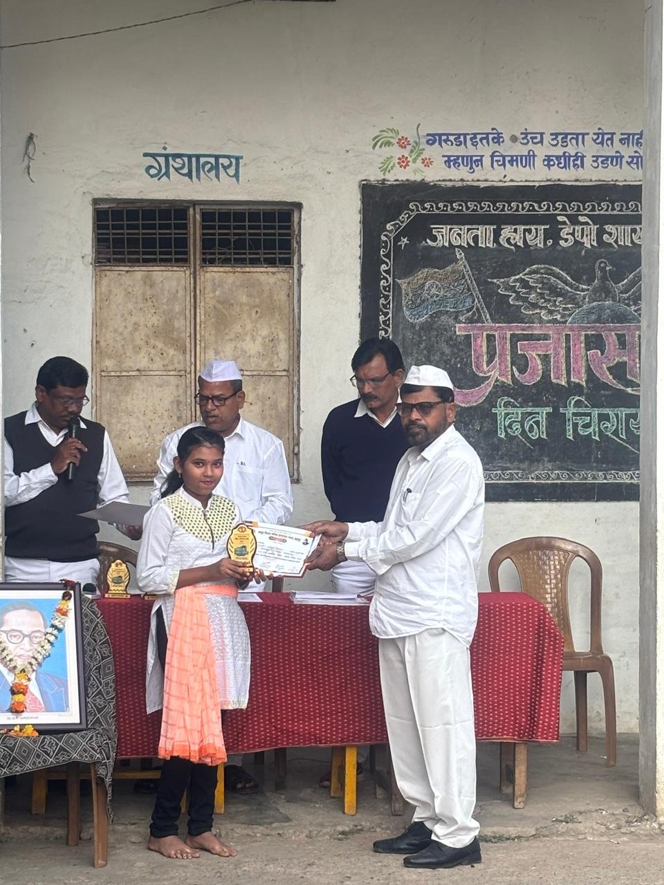 कार्यक्रमात उपस्थित मान्यवरांच्या हस्ते गणित संबोध परीक्षा 2025 (वर्ग पाचवा) कु. अवनी पेटकर- प्रथम, आर्यन रामटेके- द्वितीय तसेच (वर्ग आठवा) कु. सिया देवगडे-प्रथम, कु. राशी वेले-द्वितीय यांना प्रमाणपत्र व ट्रॉफी तसेच शासकीय चित्रकला परीक्षा 2025 मध्ये भाग घेणाऱ्या विद्यार्थ्यांचा प्रमाणपत्र देऊन गौरव करण्यात आला.