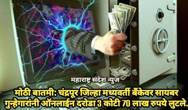 मोठी बातमी: चंद्रपूर जिल्हा मध्यवर्ती बँकेवर सायबर गुन्हेगारांनी ऑनलाईन दरोडा 3 कोटी 70 लाख रुपये लुटले.
