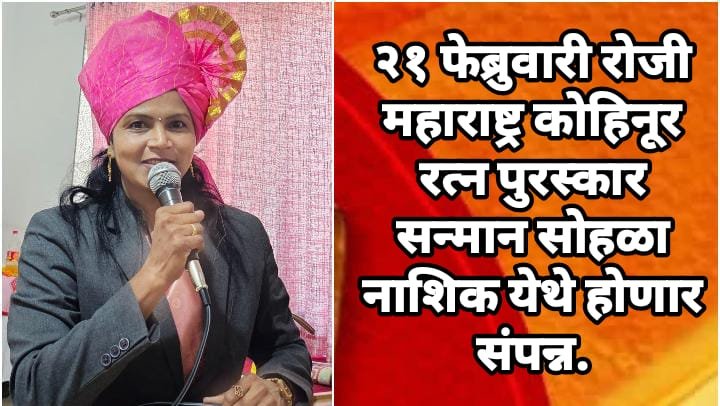 २१ फेब्रुवारी रोजी महाराष्ट्र कोहिनूर रत्न पुरस्कार सन्मान सोहळा नाशिक येथे होणार संपन्न.