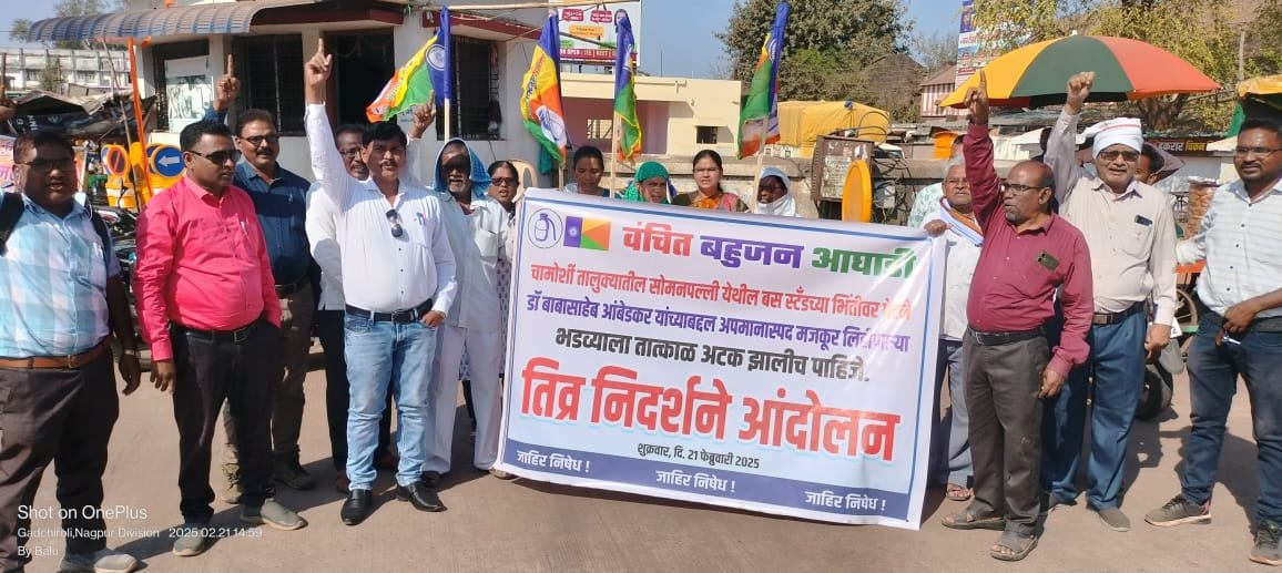 सोमनपल्ली येथिल बस स्टॅंडवर डॉ बाबासाहेब आंबेडकरांना शिव्याचा मजकूर पेंटने लिहिलेल्या घटनेचा वंचितने केला निषेध.