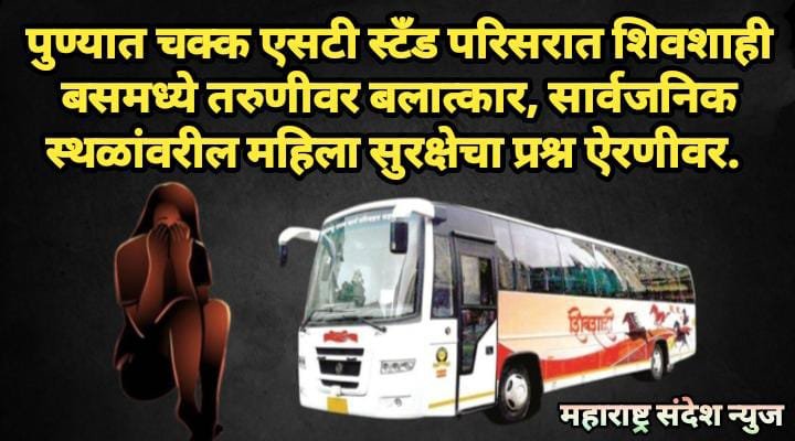 महाराष्ट्र संदेश न्युज ! ऑनलाईन पुणे:- शहरात एक संपूर्ण खळबळ माजवून घेणारी घटना समोर आली आहे. येथील स्वारगेट एसटी स्टँड परिसरात एका पार्क केलेल्या शिवशाही बसमध्ये एका तरुणीवर बलात्कार झाल्याची धक्कादायक घटना घडली आहे. या गुन्ह्यातील आरोपी अजूनही पोलिसांच्या ताब्यात आलेला नाही.