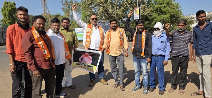 महाराष्ट्र संदेश न्युज ! ऑनलाईन बल्लारपुर :- महाराष्ट्र राज्याचे उपमुख्यमंत्री शिवसेना पक्षाचे मुख्य नेते एकनाथ शिंदे यांच्या आदेशाने, पूर्व विदर्भ संघठक किरण पांडव व सचिव प्रवक्ता व विधानपरिषद आमदार मनीषा कायंदे, संपर्क प्रमुख किशोर रॉय यांच्या सूचनेनुसार शिवसेना जिल्हा प्रमुख नितीन मत्ते यांच्या मार्गदर्शनात आज बल्लारपूर विधानसभा क्षेत्रातील बल्लारपूर येथे, वाल्मिक कराड याला फासी द्या असे नारे, देऊन जाहीर निषेध करण्यात आला.