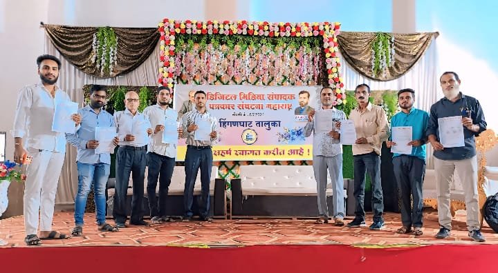 महाराष्ट्र संदेश न्युज ! ऑनलाईन हिंगणघाट:– डिजिटल मीडिया क्षेत्राच्या वाढत्या प्रभावाला अधिक बळकटी देण्यासाठी आणि पत्रकारांना त्यांच्या हक्कांसाठी संघटित करण्याच्या उद्देशाने डिजिटल मीडिया संपादक पत्रकार संघटना, महाराष्ट्र अंतर्गत हिंगणघाट तालुका कार्यकारिणी गठीत करण्यात आली. दिनांक 17 मार्च रोजी हिंगणघाट येथील के. जी. एन. हॉल येथे संपन्न झालेल्या एका विशेष समारंभात नवनियुक्त पदाधिकाऱ्यांना नियुक्तीपत्र आणि पुष्पगुच्छ देऊन त्यांचा सन्मान करण्यात आला.