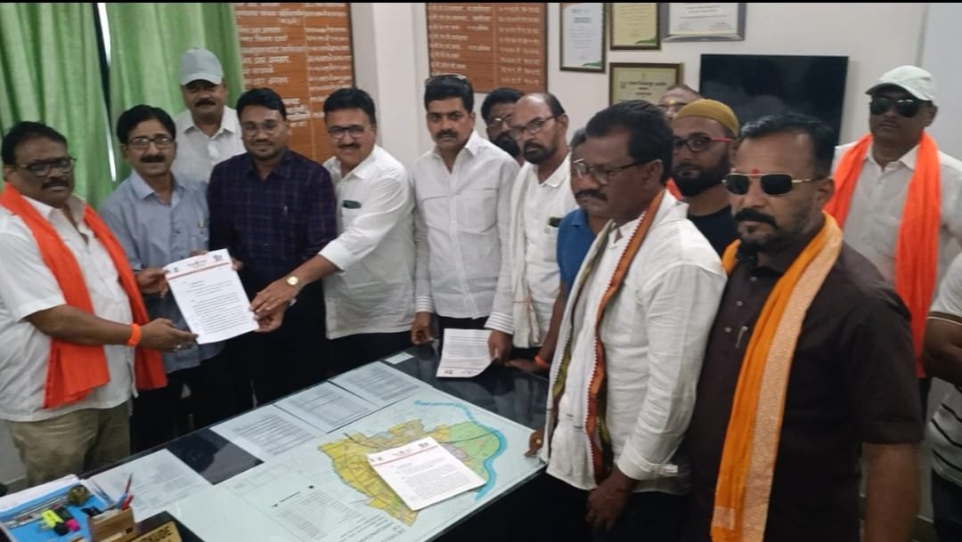 ३) महाराजांच्या पुतळ्या समोर एक मोठा भगवा झेंडा होता त्याला सुध्दा विधी पाट न करता झेंडा काढण्यात आला तो पुनश्च त्याच ठिकाणी विधिवत सन्मानाने लावण्यात यावे. ४) या पार्कच्या नावाला दुरुस्ती करून सन्मानाने छत्रपती शिवाजी महाराज उद्यान चे नामकरण करावे. ५)छत्रपती शिवाजी महाराजाच्या पुतळ्या संदर्भात आणि आजू बाजूच्या सोंदर्यकरण बाबत एक शहरातील मान्यवांची कमिटी बनवा. त्या ठिकाणी इतिहास तज्ञ, विविध पक्षाचे प्रमुख मंडळी, न प चे प्रमुख अधिकारी यांची समिती तयार करण्यात यावी .या संदर्भातील माहिती उपविभागीय अधिकारी श्री आकाश अवतारे यांना निवेदनाची प्रत देण्यात आली.