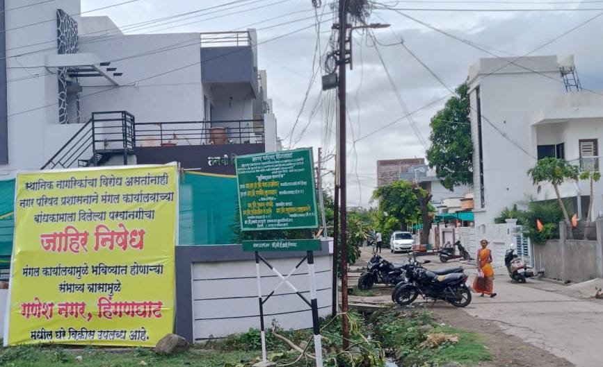 स्थानिक नागरिकांकडून दि. 14/2/2025 ला स्थानिक नगर परिषद प्रशासनाला निवेदन देण्यात आले होते, परंतु स्थानिक नगर परिषद प्रशासनाने निवेदनाकडे डोळे झाक करून सदर बांधकामाला परवानगी देण्यात आली. त्यानंतर 21 एप्रिल 2025 ला पुन्हा सदर बांधकामाच्या विरोधात निवेदन देण्यात आले व विनंती करण्यात आली, तरी पण नगर परिषदेने निवेदनावर दुर्लक्ष केले व मंगल कार्यालयाच्या बांधकामाचा वेग आणखी वाढवण्यात आला, त्यामुळे परिसरातील समस्त नागरिकांनी नगरपरिषद प्रशासनावर दिनांक 15/6/2025 ला नगर परिषद, हिंगणघाट चे मुख्याधिकारी यांना पुनश्च सदर बांधकाम थांबवण्याची विनंती करण्यात आली व दिलेली परवानगी रद्द करून संबंधित अधिकारी यांचेवर कारवाई करण्याची मागणी करण्यात आली, अन्यथा वार्डातील नागरिक व सामाजिक कार्यकर्ते राजेश भाईमारे यांनी ‘अन्नत्याग आंदोलनाचा’ इशारा सुद्धा देण्यात आलेला आहे. प्रशासन संबंधित विषयावर गंभीर नाही.