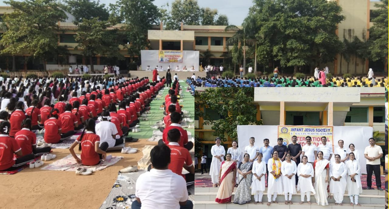 महाराष्ट्र संदेश न्युज ! ऑनलाईन राजुरा:- इन्फंट जीजस सोसायटी राजुरा द्वारा संचालित इन्फंट जीजस इंग्लिश हायस्कूल, कल्याण नर्सिंग कॉलेज आणि पतंजली योग समिती राजुरा यांच्या संयुक्त विद्यमानाने आंतरराष्ट्रीय योग दिवस उत्साहात साजरा करण्यात आला. या कार्यक्रमाचे उद्घाटन संस्थेचे संस्थापक अध्यक्ष, माजी आमदार सुभाष धोटे यांच्या हस्ते पार पडले. यावेळी इन्फंट शाळेची विद्यार्थिनी कुमारी जीविका वैद्य तसेच पतंजली योग समितीच्या प्रशिक्षकांनी योगाचे मानवी जीवनातील महत्त्व या संदर्भात मार्गदर्शन केले. त्यानंतर प्रशिक्षकांनी सादर केलेल्या प्रात्यक्षिक व सुचनानुसार उपस्थित मान्यवरांनी, शिक्षक व विद्यार्थी विविध आरोग्यदायी योगासनाचा प्रत्यक्ष अनुभव घेतला.