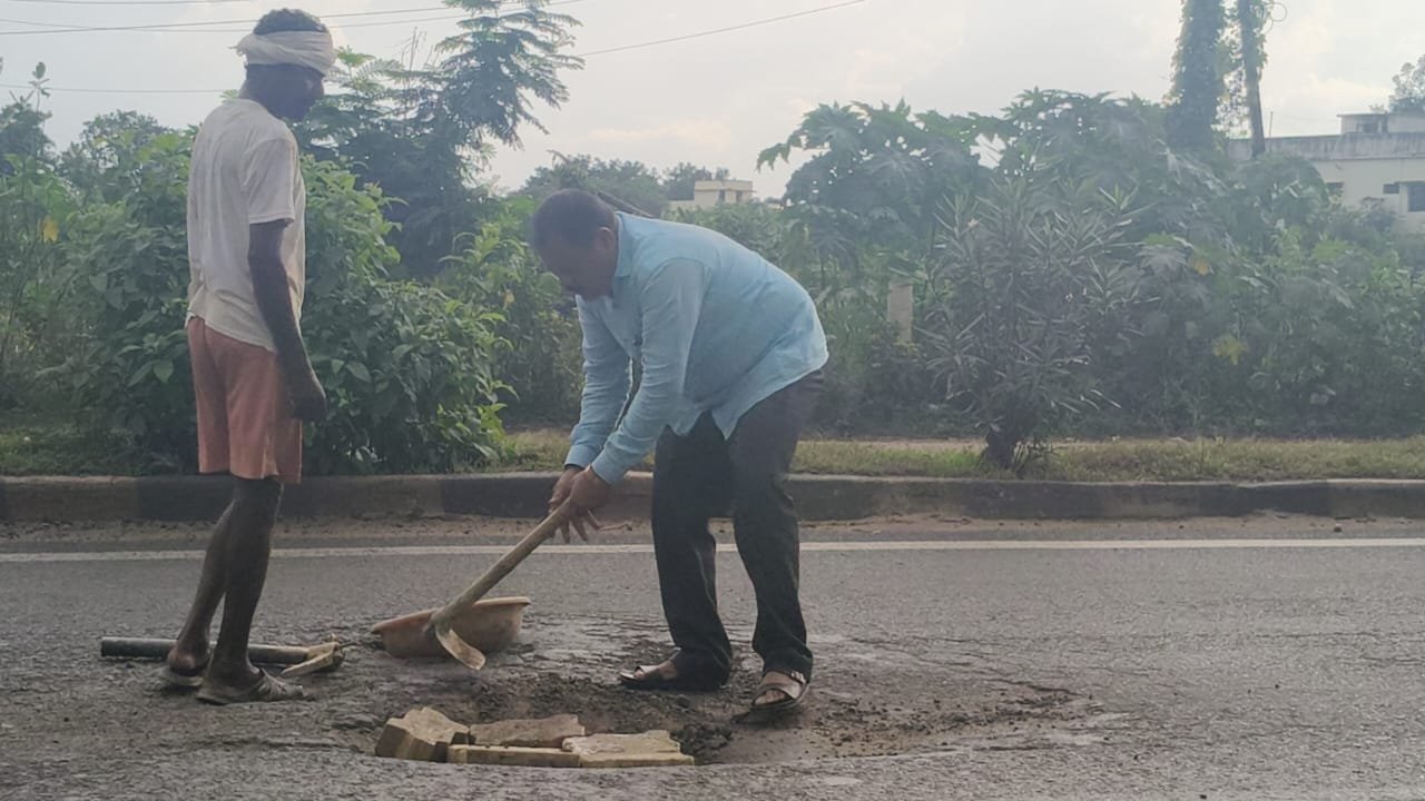 महाराष्ट्र संदेश न्युज ! ऑनलाईन बल्लारपुर:- शहर में सामाजिक क्षेत्र में सेवाभाव से अपनी एक अलग पहचान बनाने वाले काशीनाथ सिंह जो भाजपा के शहर अध्यक्ष रहकर जन सेवा में सदैव अग्रसर रहे और अपने सामाजिक कार्यों के लिए जाने जाते हैं, बल्लारपुर शहर के दिलासग्राम स्कूल के पास स्थित गड्ढे में मिसेज इंडिया जेनेरेस इंटरनैशनल क्वीन ममता नागराले की स्कूटी का चक्का गड्ढे में जाने से गिरने के कारण गंभीर रूप से घायल हुई थी जिसने भारत देश में बल्लारपुर शहर का नाम रोशन किया, जिससे काशीनाथ सिंह आहत होकर बल्लारपुर शहर में एक और उल्लेखनीय कार्य किया है। उन्होंने हाईवे रोड पर बड़े गड्ढों को भरने की मुहिम शुरू की है, जो बरसात के दिनों में यात्रियों के लिए खतरनाक हो सकते हैं। इस मुहिम की शुरुआत उन्होंने भारतरत्न डॉ. बाबासाहेब आंबेडकर और छत्रपति शिवाजी महाराज की प्रतिमा को वंदन करके की।