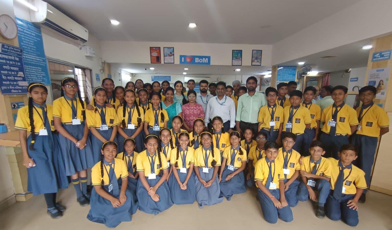महाराष्ट्र संदेश न्युज ! ऑनलाईन राजुरा:- इन्फंट जीजस सोसायटी द्वारा संचालित इन्फंट जीजस इंग्लिश हायस्कूल राजुराच्या इयत्ता ८ विच्या विद्यार्थ्यांनी बँक ऑफ महाराष्ट्र ची भेट घेऊन प्रत्यक्ष अनुभव घेत व्यवहारीक शिक्षणाचे धडे गिरवले. यावेळी बँक ऑफ महाराष्ट्र चे राजुरा शाखा व्यवस्थापक हरी कुमार वेल्पुला, व्यवस्थापक अक्षय चौधरी, सहाय्यक व्यवस्थापक स्वाती दुढे, लिपिक मोनिका कोवे यांनी बँकेच्या कार्यप्रणाली संदर्भात सेव्हिंग अकाउंट फिक्स डिपॉसिट, करंट अकाउंट, हाउसिंग लोन, गोल्ड लोनसह विविध माहिती मुलाना सविस्तर दिली.