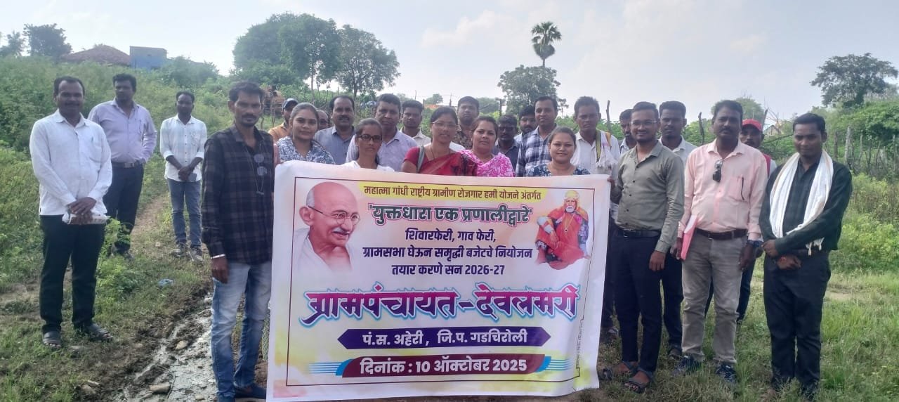 अहेरी :- राष्ट्रीय ग्रामीण रोजगार हमी योजना अंतर्गत युक्तधारा एक प्रणाली द्वारे मुख्यमंत्री समृद्ध पंचायतराज अभियानाच्या माध्यमातून देवलमरी ग्राम पंचायत अंतर्गत येणाऱ्या देवलमरी स.गावात गाव फेरी, शिवार फेरी व ग्राम सभा घेऊन पाच वर्षांचे गाव समृद्ध आराखडा तयार करण्यात आले आहे.