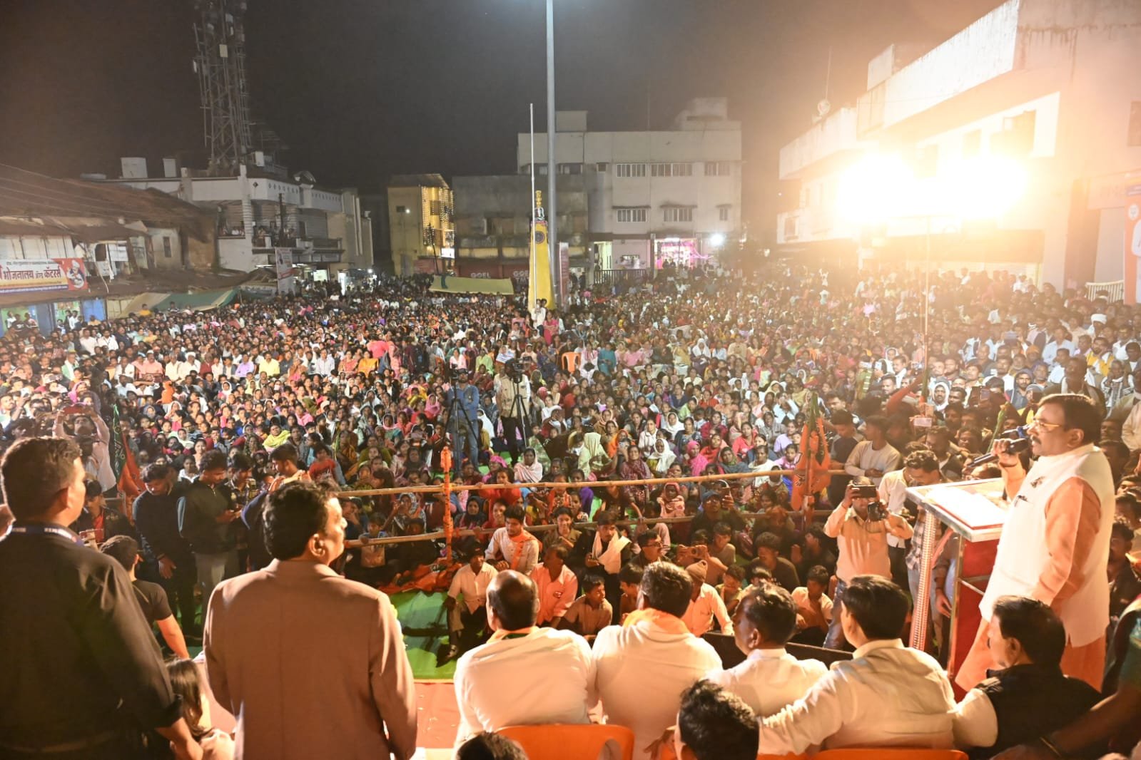 मुल नगराध्यक्ष पदाच्या उमेदवार प्रा. डॉ. किरणताई कापगते आणि बल्लारपूर नगराध्यक्ष पदाच्या उमेदवार रेणुकाताई दूधे यांसह सर्व मुल आणि बल्लारपूर प्रभागातील उमेदवारांच्या प्रचारार्थ मुल येथील गुजरी चौक आणि बल्लारपूर येथील गांधी चौकात आयोजित भव्य विजयी संकल्प सभेत जनतेला संबोधित करताना ते बोलत होते.