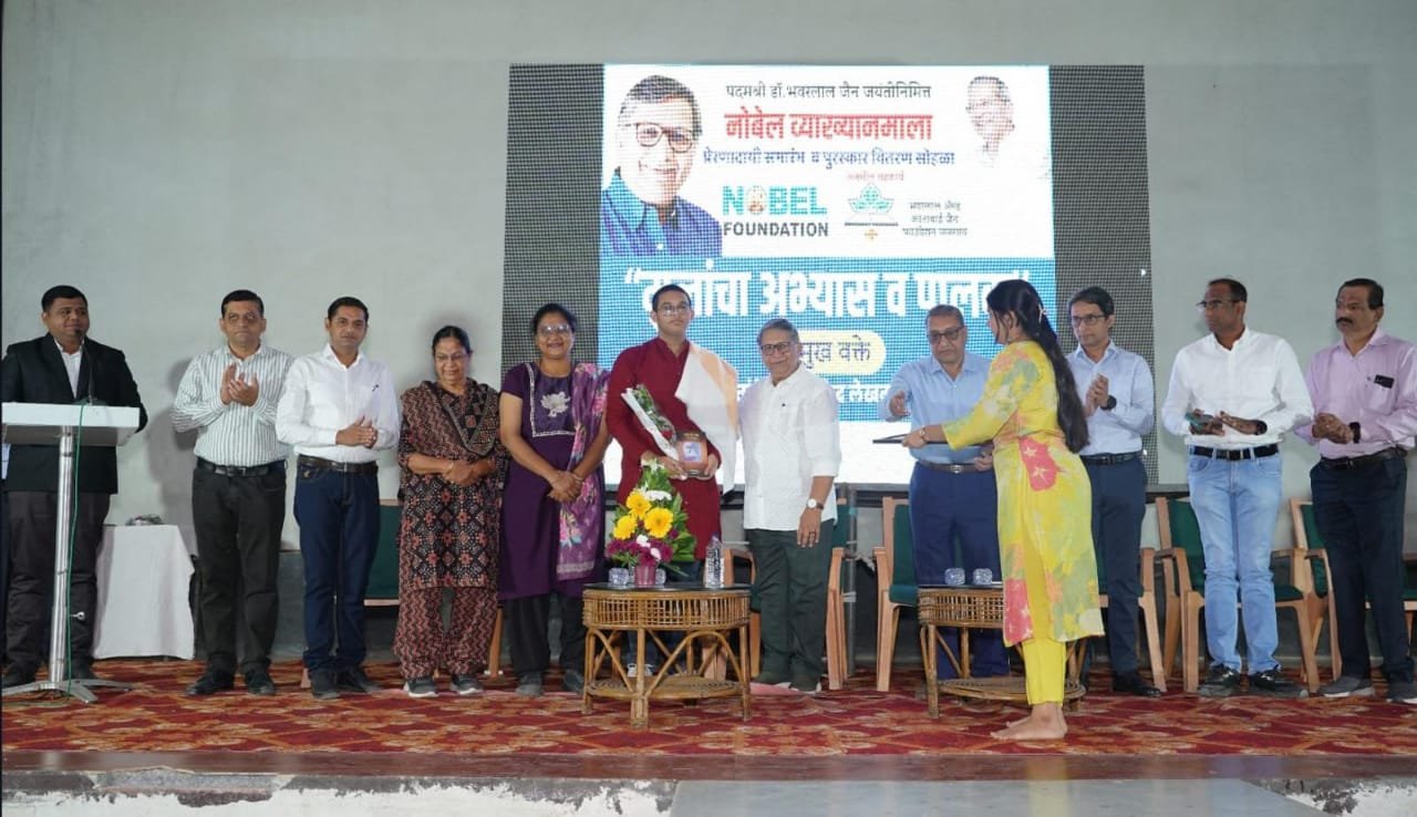 महाराष्ट्र संदेश न्युज ! ऑनलाईन हिंगणघाट:- जळगाव येथील पद्मश्री भवरलालजी जैन यांच्या ८८ व्या जयंतीनिमित्त नोबल फाउंडेशन आणि भवरलाल आणि कांताई जैन फाउंडेशन यांच्यावतीने राजीव तांबे यांचे’ मुलांचा अभ्यास व पालक ‘या विषयावर व्याख्यान आयोजित करण्यात आले. याप्रसंगी डायटचे निवृत्त प्राचार्य नीलकंठ गायकवाड, बच्छाव मोटर्सचे किरण बच्छाव, विद्यार्थी सहाय्यक समितीचे एस एस राणे, राज्यकर अधिकारी राहुल पाटील, ग्लोबल मिशन इंग्लिश शाळेचे मनोहर पाटील, पोद्दार जीनियस इंटरनॅशनल स्कूल चे नितीन पाटील, जैन इरिगेशनचे अनिल जोशी मंचावर उपस्थित होते. याप्रसंगी नोबल फाउंडेशन जळगाव तर्फे दिले जाणारे राज्यस्तरीय विज्ञान पुरस्कारांचे वितरण मान्यवरांच्या हस्ते करण्यात आले.