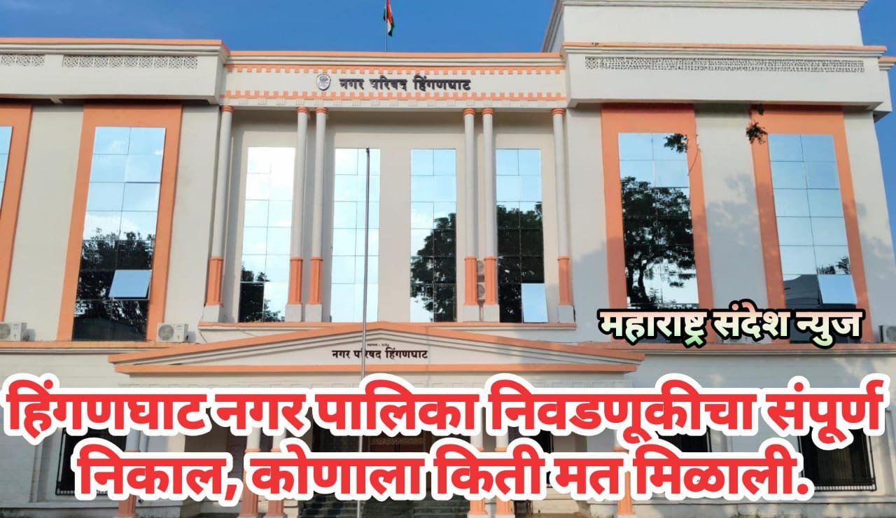 महाराष्ट्र संदेश न्युज ! ऑनलाईन हिंगणघाट:- काल हिंगणघाट येथे नगर पालिका निवडणुकीची मतमोजणी शांततेत पार पडली. यात अध्यक्ष पदासाठी डॉ. नयना उमेश तुळसकर यांनी 30674 मतदान घेऊन विजयी झाल्या. परत एकदा हिंगणघाट नगर पालिकेवर भाजपाचा भगवा फडकावला आहे.