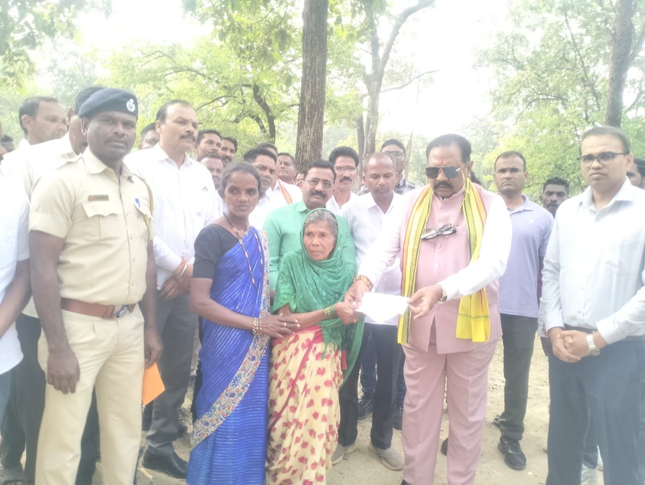 काल. दिनांक 5जानेवारी रोजी अहेरी विधानसभेचे आमदार डॉ,धर्मराव बाबा आत्राम यांच्या हस्ते हत्तीकॅम्प येथे मृतक शिवराम बामनकर यांच्या कुटूंबाला आर्थिक धनादेश वितरण करण्यात आले.