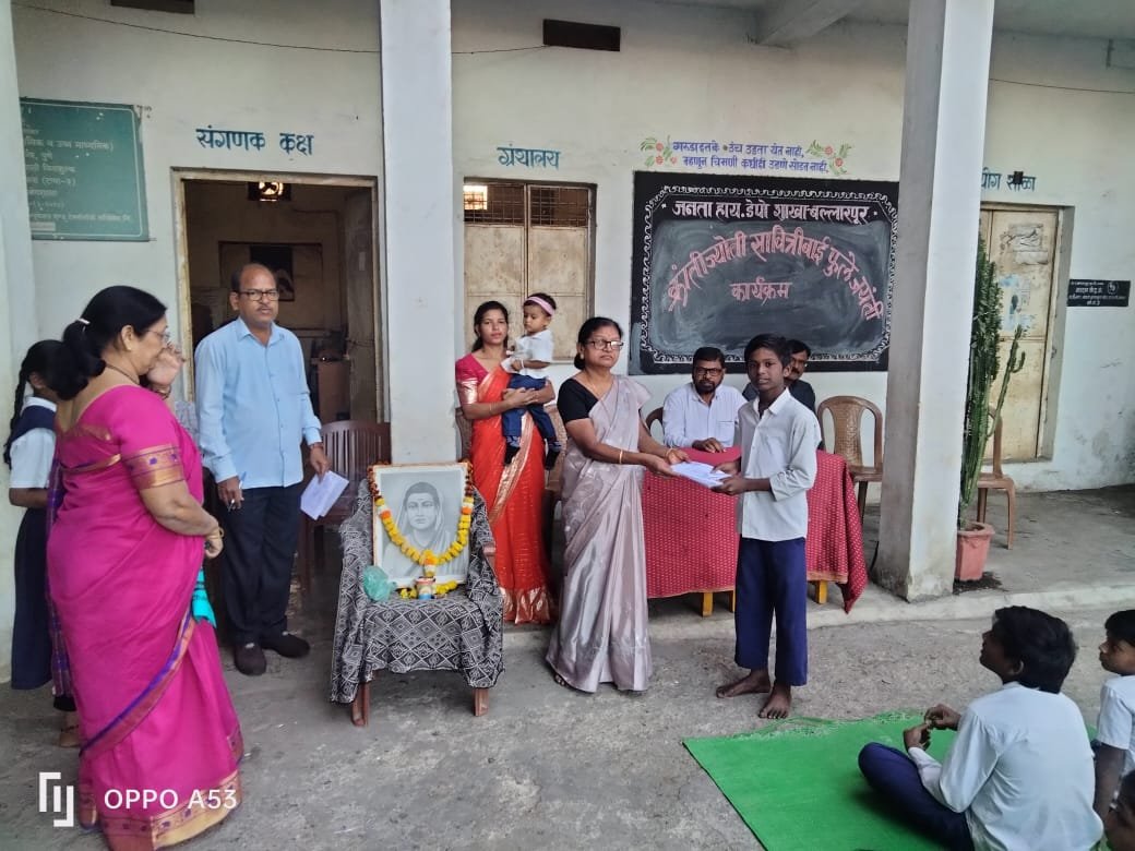 बल्लारपूर :-जनता हायस्कूल (डेपो शाखा) बल्लारपूर या शाळेत* क्रांतीज्योती सावित्रीबाई फुले जयंती साजरी करण्यात आली.