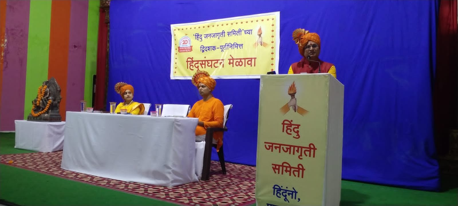 चोपडा:- अनादी अनंत काळापासून भारत हिंदु राष्ट्र होता आणि आहे. स्वातंत्र्यपूर्व काळी भारतात ५६६ स्वतंत्र हिंदू राजसंस्थाने होती. वर्ष १९५० ला आपण संविधानाचा स्वीकार केला. १९७६ मध्ये तत्कालीन केंद्र सरकारने ४२ वी घटनादुरुस्ती करून समाजवादी आणि धर्मनिरपेक्ष हे शब्द घुसडले. भारतात आजही हिंदूंचे शोषण करणारे कायदे अस्तित्वात आहेत. त्यांना सडक, संसद आणि सर्वोच्च न्यायालय या मार्गाने विरोध करण्याची आवश्यकता आहे. हिंदूंनो, भारताला संवैधानिक दृष्ट्या हिंदु राष्ट्र घोषित करण्यासाठी संघटित व्हा, असे आवाहन सनातन संस्थेचे राष्ट्रीय प्रवक्ते चेतन राजहंस यांनी केले. ते चोपडा येथे हिंदु जनजागृती समितीच्या वतीने संस्कार मंडपम सभागृहात ७ ऑक्टोबर या दिवशी आयोजित ‘हिंदूसंघटन मेळावा’ प्रसंगी बोलत होते.